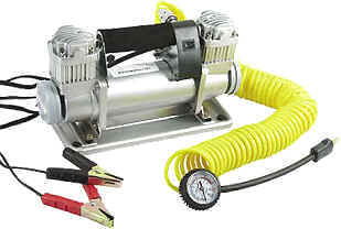 | Přenosný vzduchový velmi výkonný dvoupístový kompresor s výkonem až 150 litrů/min do auta na 12V s s výkonem 140 litrů/min s brašnou s příslušenstvím, Masivní kovový odlitek. Ojnice v kuličkovém ložisku, píst o průměru 40mm, 3 druhy koncovek na foukání míčů, hraček, člunů...Tlakoměr má dvě stupnice Atm a PSI. použití: nafukování pneumatik aut i kamionů (1 Atm asi za 1min) až do 10 Atm - pro plný výkon je nutné nechat běžet motor. Dále je možné nafukovat čluny, rafty aj. příslušenství: 8 m dlouhá kroucená hadice s tlakoměrem a rychlosvorkou, která umožňuje rychlé odpojení nebo připojení hadice ke kompresoru. Příslušenství 3ks vzduchové nástavce, textilní brašna | |||||||||||||||||||||||