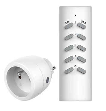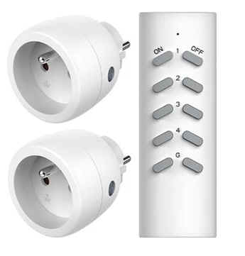 Sada bezdrátově ovládaných zásuvek obsahuje 4 kanálový dálkový ovladač a 2 kusy dálkově ovládané zásuvky 230V. Sada je určena pro dálkové zapínání a vypínání elektrických spotřebičů na 230V: např. osvětlení, audio-video zařízení, větráky, čerpadla ap. Pomocí dálkového ovladače díky radiovému přenosu můžete zapínat a vypínat zásuvku i přes překážky, jako zdi nebo nábytek. Ale pozor, při průchodu ovládacího signálu přes překážky se dosah zařízení snižuje, třeba i na 1/3 dle vlastnosti překážky pro útlum radiových vln. Dálkovým ovladačem můžete ovládat až 4 zásuvky. Obsahuje 4 páry tlačítek pro zapnutí a vypnutí jednotlivých zásuvek 1 až 4 a dále pár tlačítek na současné zapnutí nebo vypnutí všech zásuvek. Maximální zatížení zásuvky je 3680 W/16 A. Zásuvky lze ovládat také ručně tlačítkem ON-OFF. Spárování zásuvky s požadovaným tlačítkem 1 až 4 se provádí automaticky během učícím režimu zásuvky. Jedním dálkovým ovladačem můžete ovládat nezávisle až 4 zásuvky |