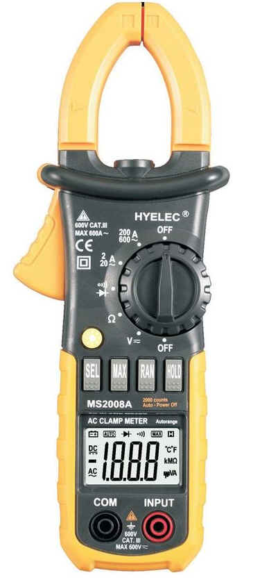 | digitální klešťový ampérmetr pro střídavé proudy s automatickou volbou rozsahů pro měření střídavých proudů do 400A, přepínač pro měření proudu má dva rozsahy 2/20A a 200/400A, na displeji se rozsah přepíná automaticky v rámci nastaveného rozsahu. Pro měření napětí a rezistorů se měřící rozsah nastaví automaticky, měří.napětí do 600V, odpor do 20Mohm, Dále má měření diod a vodivosti, přepínání funkce modrým tlačítkem SELECT. Měření max. hodnoty (aktivace šedým tlačítkem MAX)), Data Hold (aktivace žlutým tlačítkem HOLD), Ikon display, Sleep mód (automatické vypnutí, prosvětlení displeje. Součástí dodávky je textilní pouzdro - penál se zipem k bezpečnému uložení přístroje | ||||||||||||||||||||||||||||||||||||||||||||||||||||||||||||||||||||||||||||||||||||
