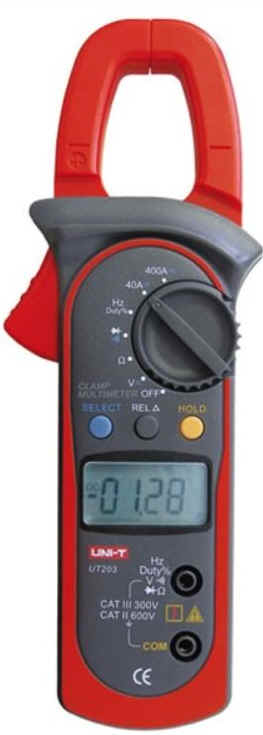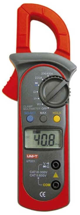 UT201 klešťový ampérmetr do 400A/AC, U, R, test D a píp |