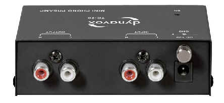 a výstupem předzesilovače. Vhodné i pro staré zesilovače (věže) s běžnými vstupy (CD, DVD, AUX) s konektory CINCH nebo i s pětikolíkem 5DIN, které nemají vstup pro gramo - (PHONE - pro magneto dynamickou přenosku). Součástí dodávky je napájecí síťový adaptér 12V/300mA. | |||||||||||||||||||