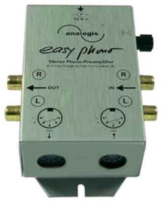propojení uzemění šasi gramofonu. Vstup i výstup je osazen konektory CINCH (R+L). Provedení kovová krabička skontrolkou LED. Napájení 12V DC. Součástí dodávky je napájecí síťový adaptér | |||||||||||||||||||||||||||