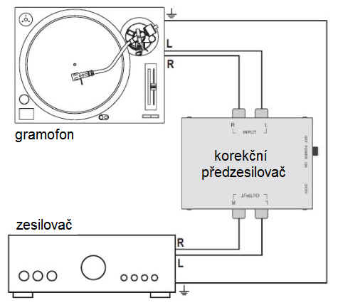 která můžete připojit přímo do předzesilovače. Předzesilovač má kmitočtovou korekci