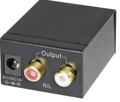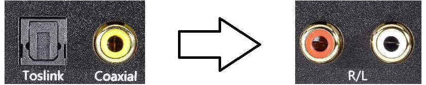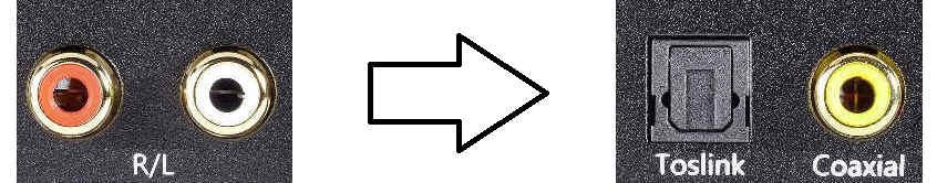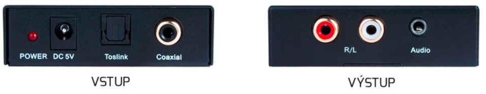 vstup je optický (TOSLINK) nebo koax(žlutý konektor CINCH), výstup je klasický analog 2x CINCH R/L