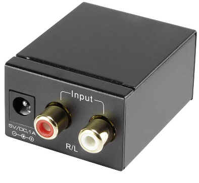vstup klasický analog 2 CINCH R/L (R+L kanál) , výstup je optický (TOSLINK) nebo koax (žlutý konektor CINCH)