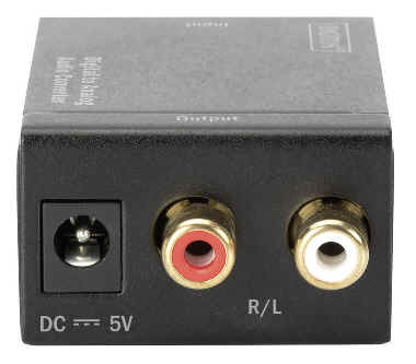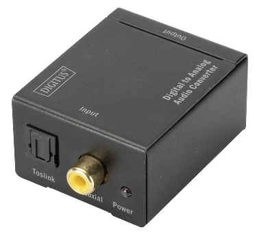 | DA převodník využijete, pokud potřebujete propojit moderní zařízení (například TV), které má jen digitální audio výstup, se starším přístrojem, který má pouze analogový audio vstup (např. zesilovač). Převodník má také výstup 3,5mm Jack, do kterého můžete přímo připojit sluchátka. To umožňuje poslouchat například TV ve sluchátkách v případě, že TV nemá sluchátkový výstup. V případě že TV má sluchátkový výstup, umožní vám převodník poslouchat zvuk ve sluchátkách (zapojené v převodníku) a zároveň přímo z reproduktorů TV, které by se jinak odpojili při zasunutí sluchátek do sluchátkového výstupu TV. | |||||||||||||||||||||
