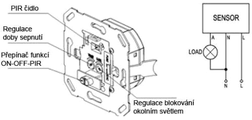Použití: ideální pro chodby a schodiště, kde při příchodu osoby automaticky rozsvítí světlo po nastavenou dobu (1 min) |
