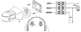 Pro funkci musíte mít přívod 230V (L+N) + přívod osvětlení Pod snímačem
