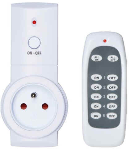 Sada bezdrátově ovládaných zásuvek obsahuje pětikanálový dálkový ovladač a dálkově ovládané zásuvky 230V. Sada je určena pro dálkové zapínání a vypínání elektrických spotřebičů na 230V: např. osvětlení, audio-video zařízení, větráky, čerpadla ap. Pomocí dálkového ovladače díky radiovému přenosu můžete zapínat a vypínat zásuvku i přes překážky, jako zdi nebo nábytek. Ale pozor, při průchodu ovládacího signálu přes překážky se dosah zařízení snižuje, třeba i na 1/3 dle vlastnosti překážky pro útlum radiových vln. Dálkovým ovladačem můžete ovládat až 5 zásuvek. Obsahuje 5 párů tlačítek pro zapnutí a vypnutí jednotlivých zásuvek 1 až 5 a dále pár tlačítek na současné zapnutí nebo vypnutí všech zásuvek. Maximální zatížení zásuvky je 3680 W/16 A. Zásuvky lze ovládat také ručně tlačítkem ON-OFF. Spárování zásuvky s požadovaným tlačítkem 1 až 5 se provádí automaticky během učícím režimu zásuvky. Jedním dálkovým ovladačem můžete ovládat nezávisle až 5 zásuvek. |