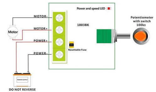 | Plynulá regulace počtu otáček nízkonapěťových elektromotorů. Tyto motory najdou využití hlavně ve stejnosměrných vrtačkách, modelech aut, pohonech stěračů, tak jako u elektrického nářadí. Výstupní proud od 0 do 40A lze plynule nastavit pomocí potenciometru. použití: regulace otáček stejnosměrných motorů pro napětí 9 až 55V s max. odběrem do 40A. možno též používat pro regulaci jasu pásků LED do max. proudu 40A. | |||||||||||||||||||||||||