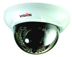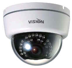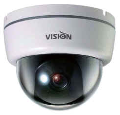 levná vnitřní DOME kamera s vyšším rozlišením, plastový kryt, kamera je zabudována v otočném držáku, který je umístěn pod plexi krytem (kopulí) a umožňuje nastavení kamery ve dvou osách. Z kamery je vyveden kabel cca 60cm zakončen běžnými konektory DC2,1 a BNC. Kamera je osazena mikroobjektivem, který je možné změnit a tím změnit úhel záběru. Vhodné objektivy. |