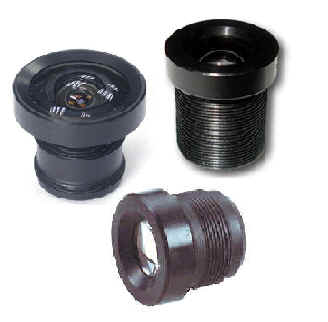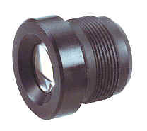 Mikroobjektiv. Záměnou objektivu dosáhneme jiný úhel záběru, jinou scénu. Nízká hodnota ohniskové vzdálenosti( f=2,96) odpovídá širokoúhlému záběru, vhodné např. pro monitorování celé místnosti jedinou kamerou nebo při požadavku venkovní kamery snímat co nejširší prostor. Vysoká hodnota ohniskové vzdálenosti (f =16) odpovídá teleobjektivu - úzký úhel záběru způsobí přiblížení objektu se zaměřením na detaily. Výhodné pro sledování detailů z větší vzdálenosti, například sledování klávesnice a displeje u kasy v obchodech nebo při venkovním použití sledování obličeje osob při průchodu bránou nebo SPZ u přijíždějících vozidel. Standardní objektiv je f = 4,3 mm (78°) |