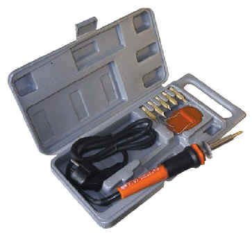 Tato vypalovačka je určen ke kreativní tepelné a trvanlivé úpravě různých materiálů. S tímto výrobkem je možné vypálit obrázky či nápisy do dřeva, kůže, vosku nebo korku. K tomuto účelu jsou k dispozici různé vypalovací hroty a raznice (razítka-kostičky,kolečka,proužky,trojúhelníky a jiné tvary). Kromě toho slouží tento výrobek i jako páječka pro menší pájení a jako řezačka za horka např. pro polystyren. |