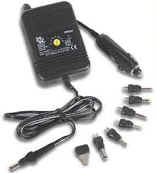 Spínaný zdroj do auta. Vstupní napětí 12 až 24V - konektor do zapalovače cigaret. Volba výstupního napětí přepínačem 1,5V až 12V, max. výstupní prou až 2A. Dodáváno s 6ks nejčastěji používaných DC konektorů |